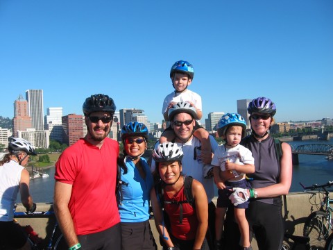 Me, June, Jean, Bob, Quinn, Ethan, and Kari at the Bridge Pedal. We're on I-5 here