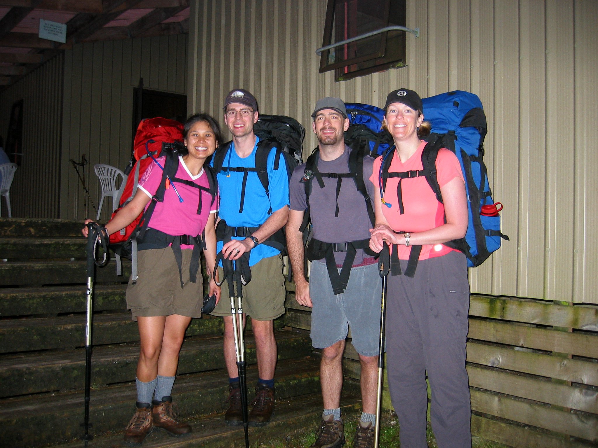 Outside the third night's hut, an early start to beat the rain!
