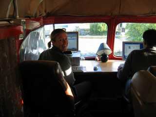After a missed bus, chase in a minivan, dead battery, and race back to get our bags,