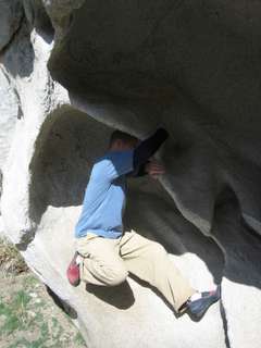 Luke on a great boulder we found to play on (and in!) near Elephant Rock the
